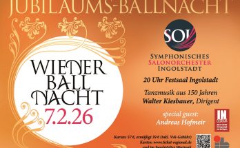 Wiener Ballnacht 2026 Die  Jubiläumsballnacht: 25. Wiener Ballnacht! Sa, 7.2.2026, 20 Uhr Festsaal des Stadttheaters Ingolstadt Symphonisches Salonorchester Ingolstadt Dirigent: Walter Kiesbauer Im Jahre 2000 fand die 1. Wiener Ballnacht …